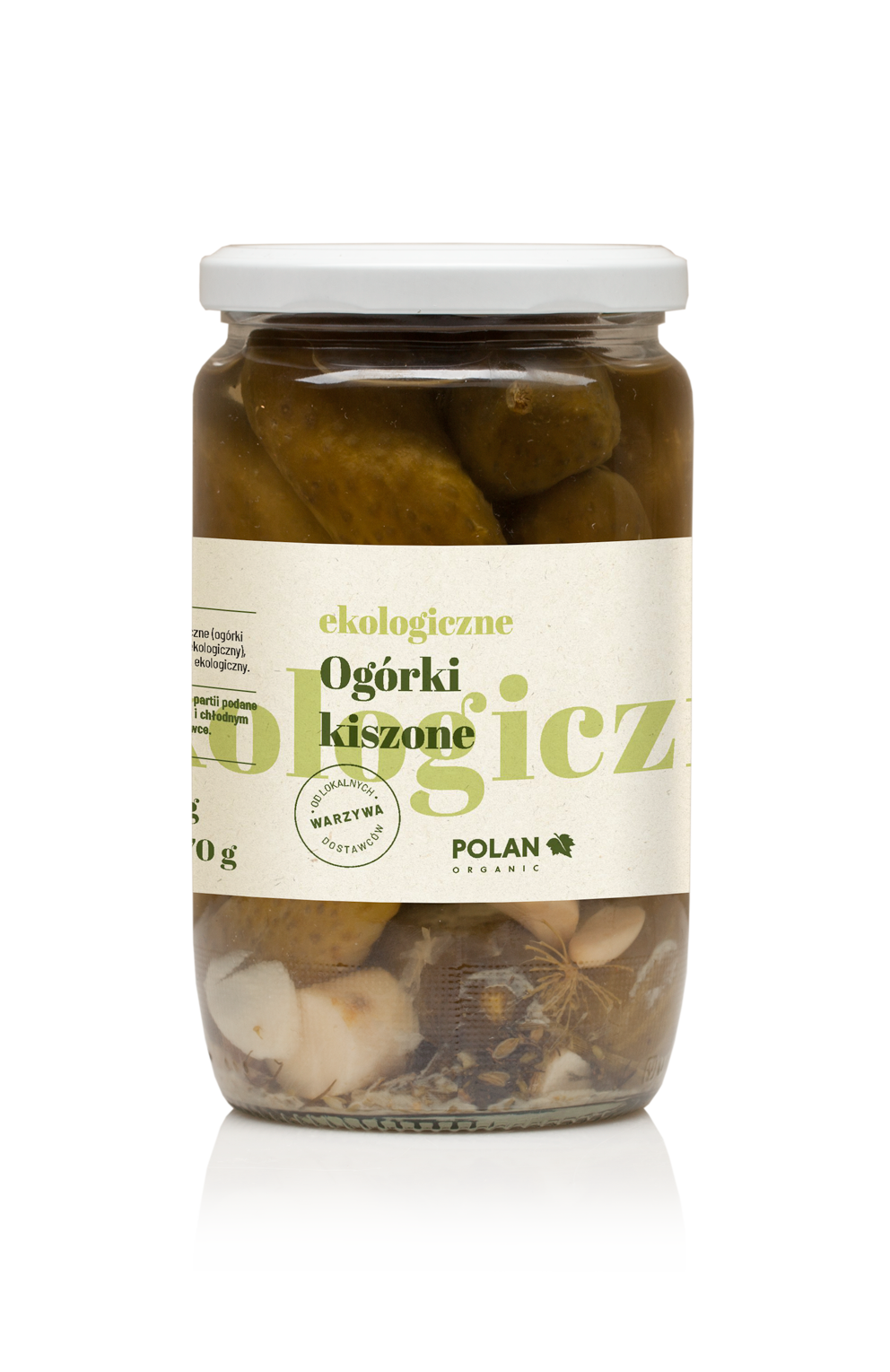 Ogórki kiszone małosolne ekologiczne (ogórki ekologiczne, sól, koper ekologiczny, czosnek ekologiczny), zalewa z kiszenia, koper ekologiczny, czosnek ekologiczny.
